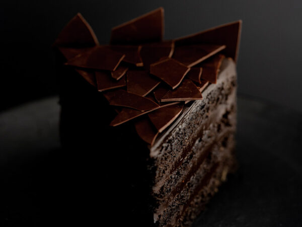 Comece colocando palitos na lateral do bolo para marcar a altura desejada da fatia. Usando os palitos como guia e fazendo movimentos de vai-e-vem, passe a faca rente a eles, girando o bolo com uma das mãos enquanto a outra corta gentilmente, sem pressa e com muito carinho!