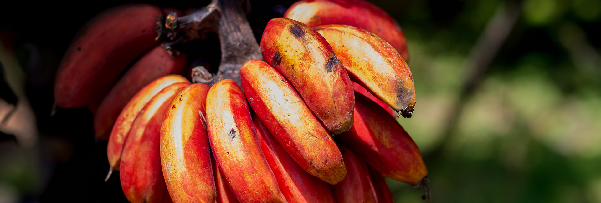 - Banana-vermelha (rosa, pink, Musa Valentina): originária do Caribe, a banana rosa tem uma casca castanha avermelhada. Quando madura, a casca se abre revelando a polpa de cor creme a rosa muito claro. É uma banana mais doce e de textura mais suave que a das variedades amarelas.