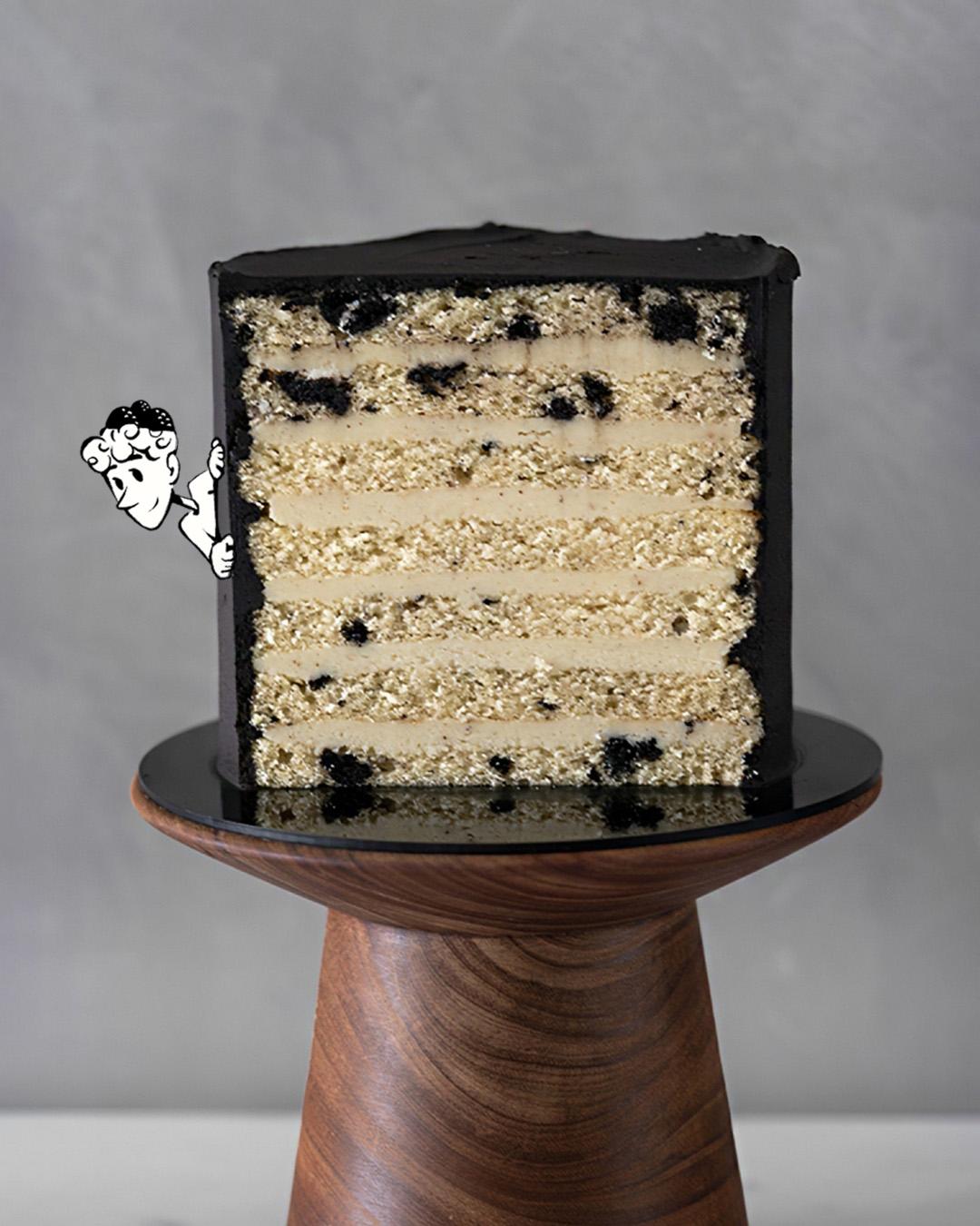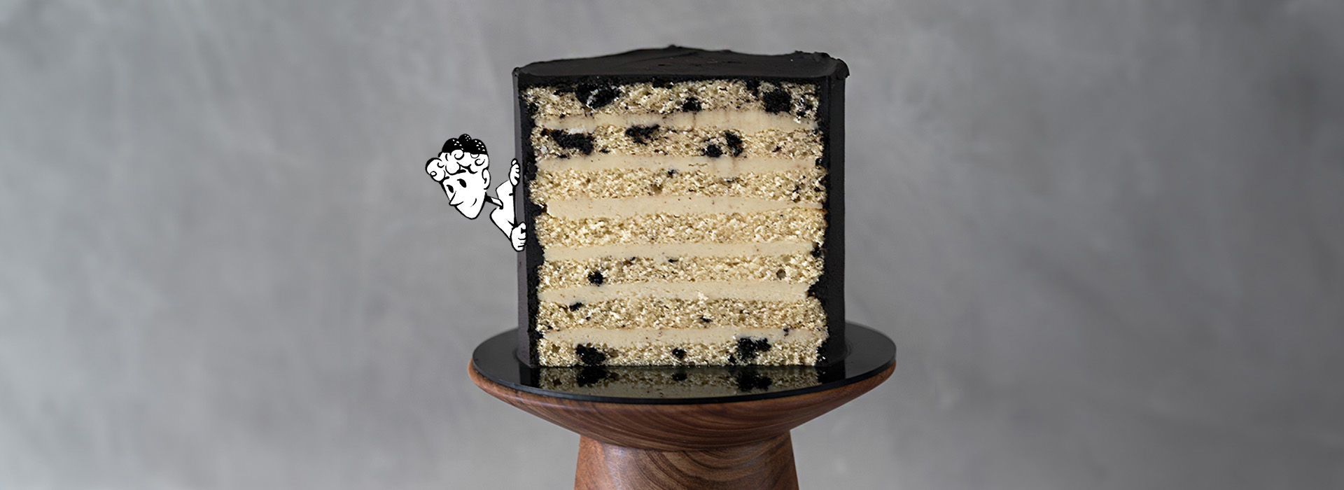 O Bolo de Oreo combina massa fofinha de baunilha com pedacinhos do famoso biscoito Oreo, criando pequenas surpresas a cada garfada. O recheio leva creme de baunilha e a cobertura é um buttercream de chocolate inspirado no sabor marcante do clássico biscoito.