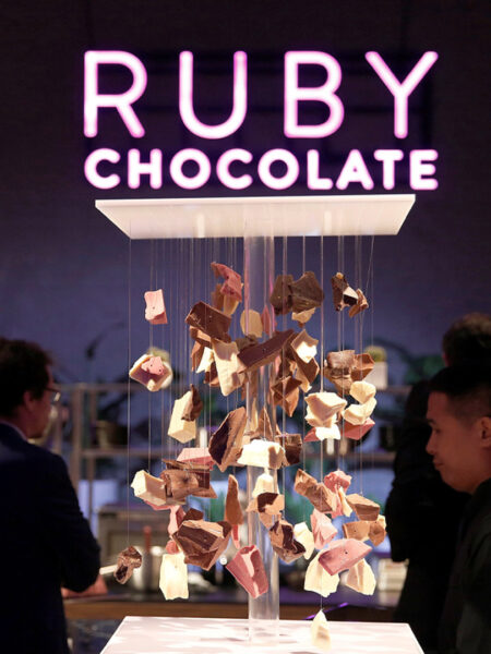 A notícia já tem alguns meses, mas, até agora, quase ninguém provou ou sabe exatamente como é o chocolate Ruby, lançado pela Barry Callebaut para complementar o trio de chocolates branco, ao leite e amargo. O tal “quarto tipo de chocolate” é cor-de-rosa e possui sabor de frutas vermelhas — sem, contudo, ter nada de corantes ou aromatizantes. Diz a empresa que cor e sabor são obtidos através de um processo especial de produção de um determinado cacau (que eles não dizem qual é). A lista de ingredientes também não foi divulgada. De acordo com a empresa, o público-alvo deste chocolate deve ser os millenials — ou seja, os jovens que nasceram neste século e têm, portanto, perto de 20 anos de idade.